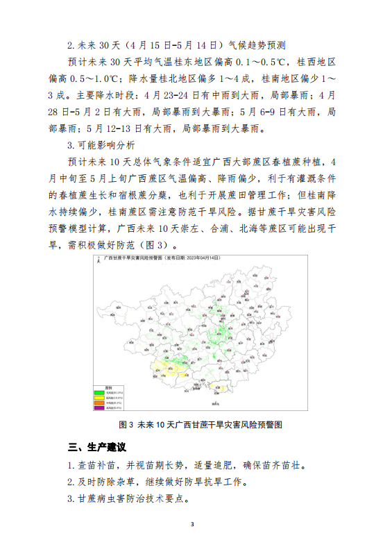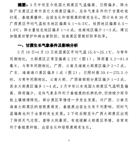近期气象条件利于蔗田管护 桂南蔗区仍需防范 作者: 来源:广西气象科学研究所 2023年4月17日 9:23 阅读(43) 评论关闭 声明: 云南国际食糖交易中心网站及沐甜科技致力于保护作者版权。本网站部分文章和信息来系转载或引用,目的在于传播更多信息,并不意味着赞同其观点或证实其内容。如转载稿涉及版权等问题,请及时联系 0871 - 64587901,本网站会予以更改或删除相关内容,保障您的权利。