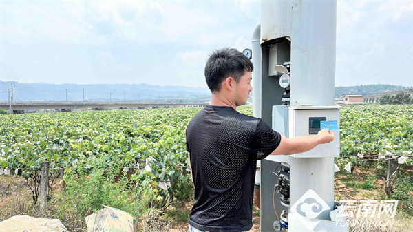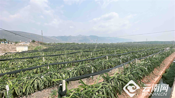 在红河哈尼族彝族自治州弥勒市朋普高效节水片区,火龙果成熟在即、玉米秧苗长势喜人。滴灌、喷灌等设施已经铺设到田间地头,根据地块作物长势,随时可进行灌溉。