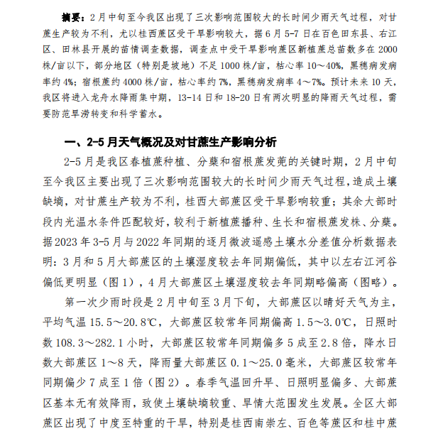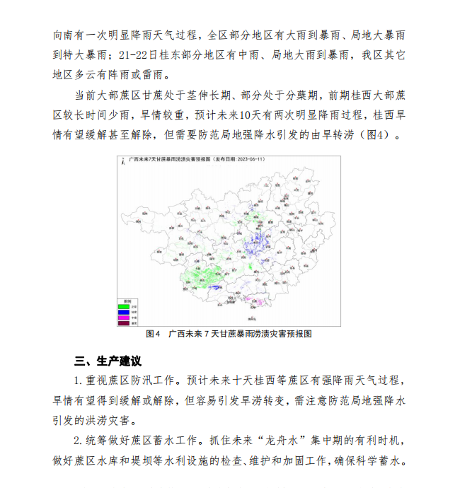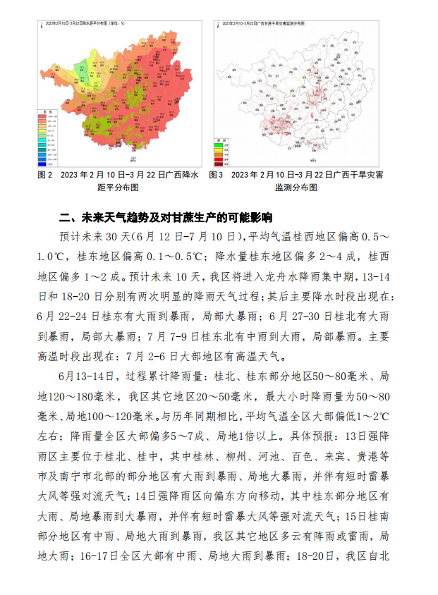 桂西蔗区至今受干旱影响较大 未来十天全区有强降雨天气 作者: 来源:广西气象局决策服务中心 2023年6月13日 10:56 阅读(38) 评论关闭 声明: 云南国际食糖交易中心网站及沐甜科技致力于保护作者版权。本网站部分文章和信息来系转载或引用,目的在于传播更多信息,并不意味着赞同其观点或证实其内容。如转载稿涉及版权等问题,请及时联系 0871 - 64587901,本网站会予以更改或删除相关内容,保障您的权利。