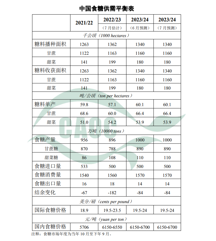 7月中国食糖供需形势分析(附平衡表)