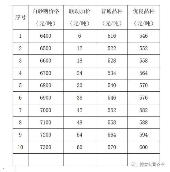 一、普通品种收购首付价格为510元/吨(对应白砂糖结算价格6300元/吨),优良品种收购首付价格为540元/吨,淘汰品种、无名品种收购价格为350元/吨。甘蔗品种具体分类如下: