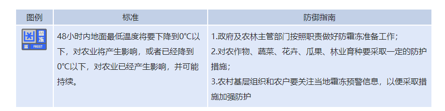 柳州市气象台2023年12月20日16时31分发布霜冻蓝色预警信号:预计24小时内柳州市郊部分乡镇最低气温将下降到4度以下且可能出现霜冻,将对农业产生影响,请做好防范。