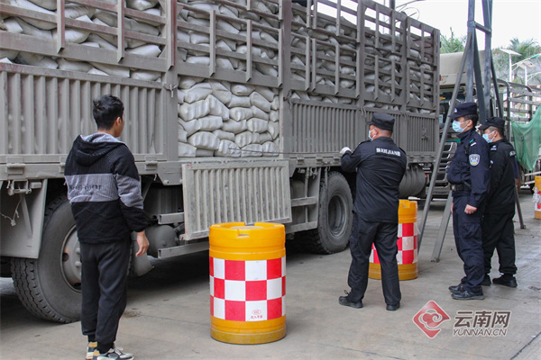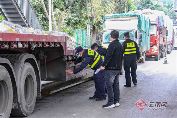 新年伊始,西双版纳傣族自治州勐海县打洛口岸一派繁忙景象。货运通道内,一辆辆载满货物的大型运输车辆在打洛出入境边防检查站执勤民警的监护下有序等候入境检查,查验货场里也整齐停放着等待查验通关的货车。