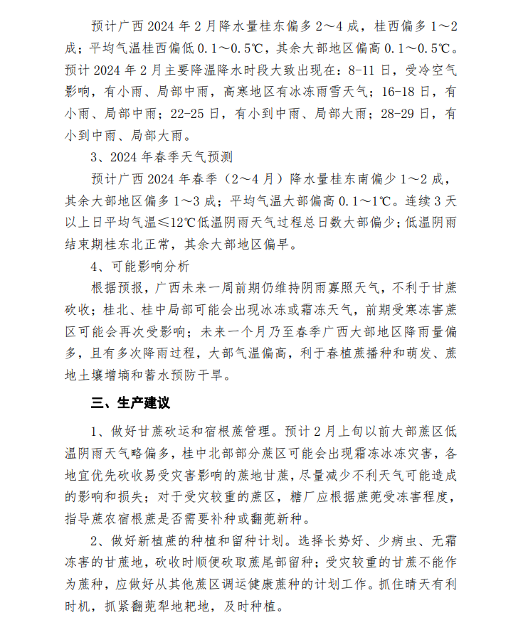 上旬末前广西低温阴雨持续 宜科学计划砍收入榨 作者: 来源:广西气象科学研究所 2024年2月7日 22:01 阅读(56) 评论关闭 声明: 云南国际食糖交易中心网站及沐甜科技致力于保护作者版权。本网站部分文章和信息来系转载或引用,目的在于传播更多信息,并不意味着赞同其观点或证实其内容。如转载稿涉及版权等问题,请及时联系 0871 - 64587901,本网站会予以更改或删除相关内容,保障您的权利。