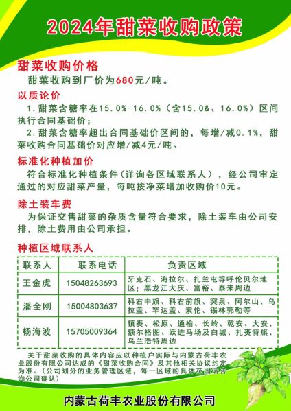 2024年内蒙古荷丰农业甜菜收购到厂价680元/吨