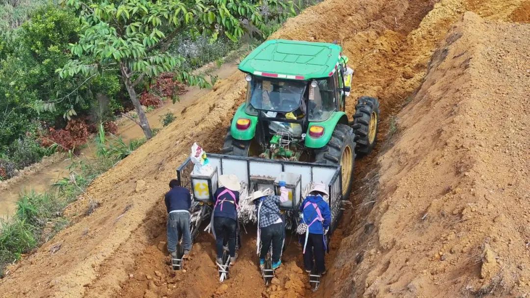阵阵机械轰鸣声回荡在勐堆乡帮东村“坡改梯”的甘蔗地里,挖掘机来回作业,松软的土壤被推得平平整整,一块块坡地被改造成层叠有序的水平梯田。