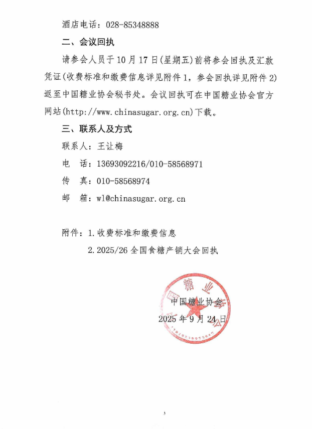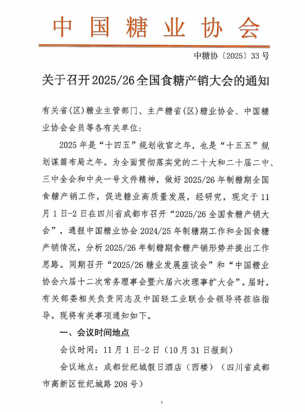 文章来源于互联网:关于召开2025/26全国食糖产销大会的通知