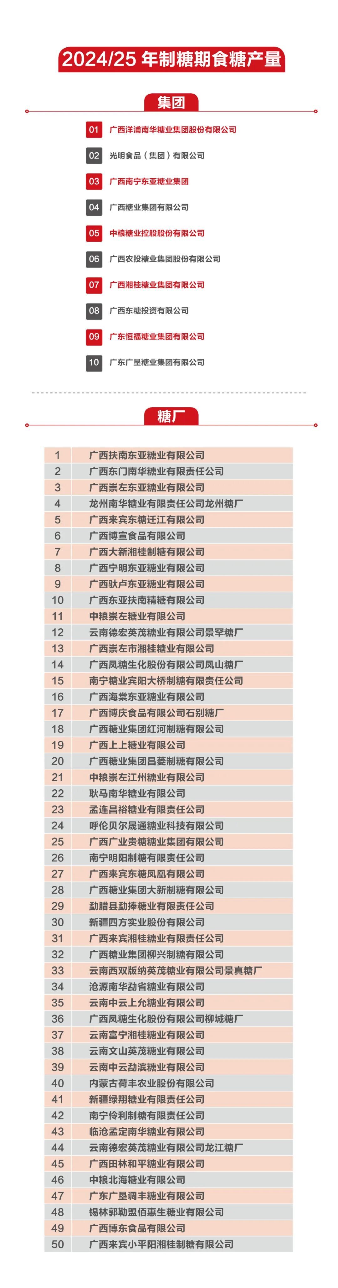 文章来源于互联网:2024/25年制糖期制糖企业(集团)、糖厂生产情况