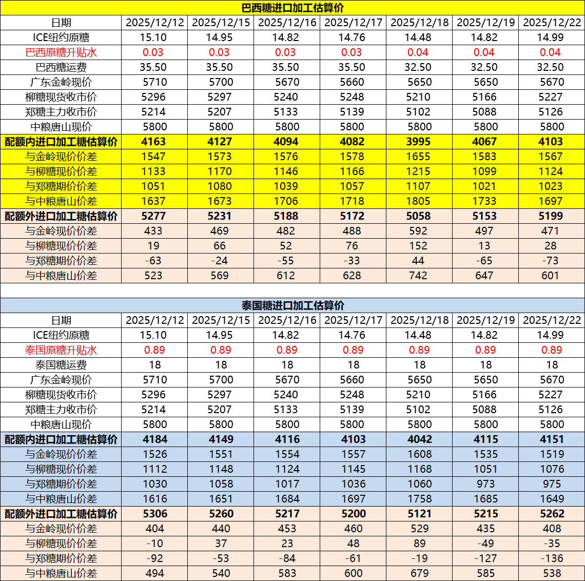 相关推荐: 巴西泰国进口糖升贴水、运费及加工成本(12月11日更新)
