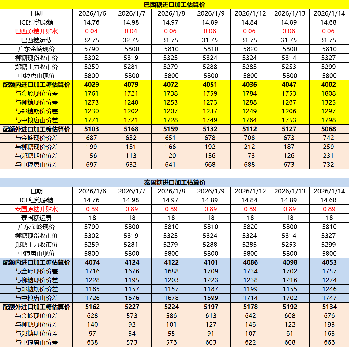 相关推荐: 巴西泰国进口糖升贴水、运费及加工成本(1月6日更新)