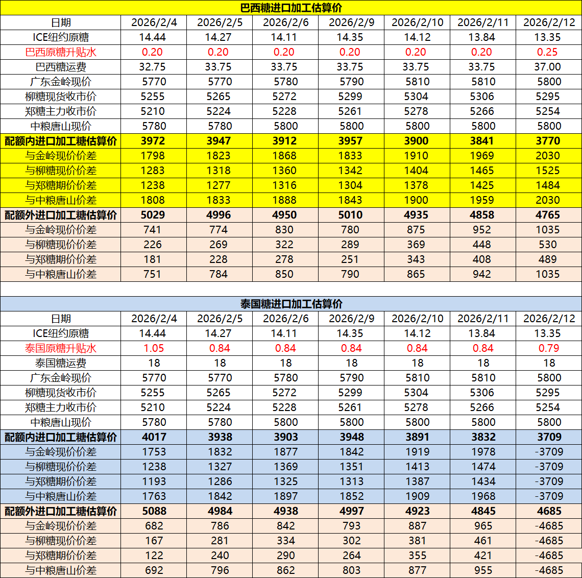 相关推荐: 巴西泰国进口糖升贴水、运费及加工成本(1月6日更新)